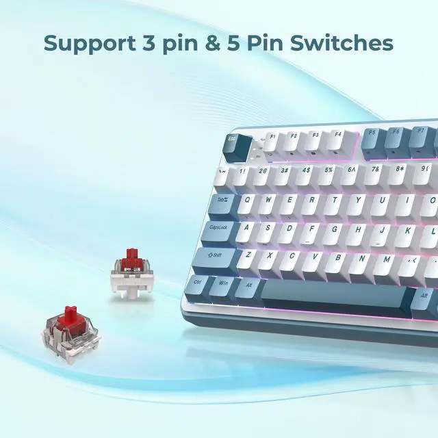 • Features hot-swappable sockets for 3/5-pin switches and double-shot PBT keycaps for lasting feel and fade-resistant labeling.