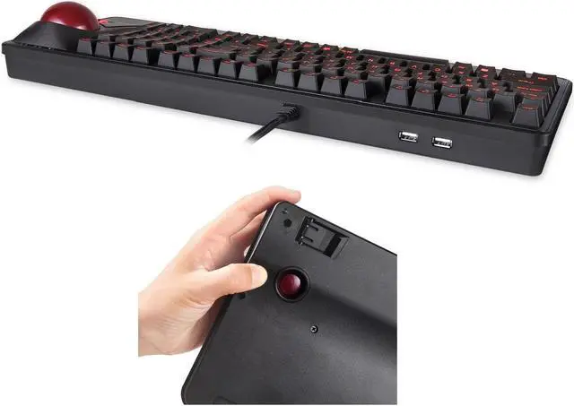 Taking up no extra workstation space by having a built-in trackball, tilting scroll wheel, numeric 10 keys, extra 2 USB hubs all in one keyboard. Flexible support to external devices and low visibility use (dark control room, TV room or virtual reality play station).