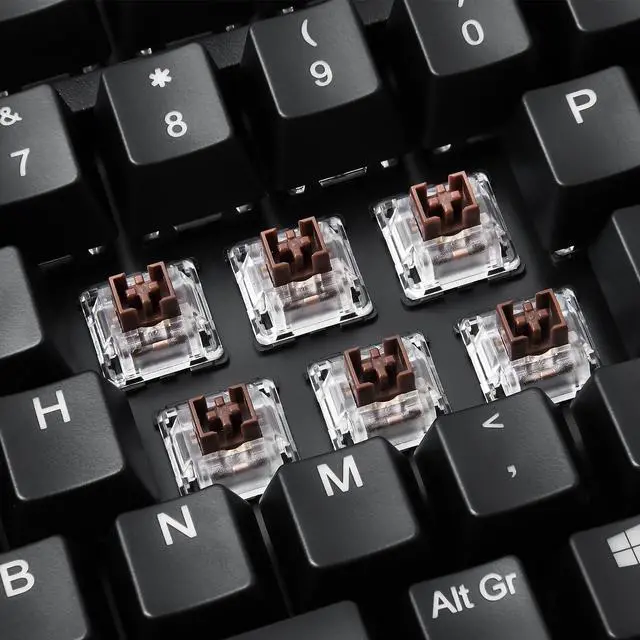 Mechanical keyboard fans will be pleased with the Kailh Brown switches with its solid 50g operating force and gentle tactile feel. Perfect balance between Blue switches and Black switches to keep the springy rebound without over-exhausting the fingers.
