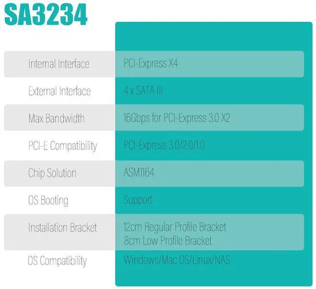 Massive Storage Expansion: The 4 - port PCIe X4 SATA III Expansion Card allows your PC to access 4 SATA drives together, perfect for creating a large storage pool or setting up software - RAID in Windows, Mac OS, and Linux (no hardware RAID support).
