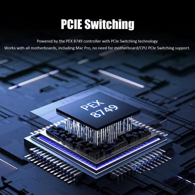 Universal Motherboard Compatibility: Powered by the PEX 8749 PCIe 3.0 Switch controller, eliminating the need for motherboard/CPU PCIe bifurcation supportworks with all hardware platforms, including x86 and ARM hardware architectures as well as Mac Pro.
