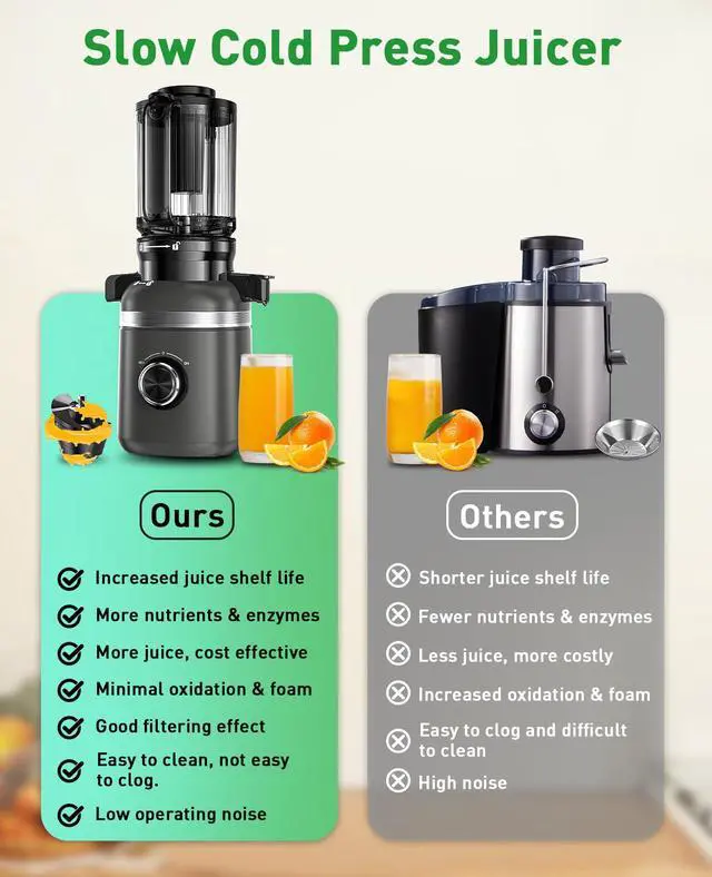 SMOOTH TEXTURE- Say goodbye to pulp and enjoy a richer, purer juice experience. The cold press juicer machine features a triple-layer filter (0.25mm mesh) that effectively reduces foam and pulp residue, ensuring a richer and fresher taste.