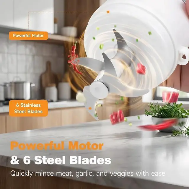 Powerful Chopping: This electric garlic chopper features an upgraded 1.8mm recessed grinding system with 6 stainless steel blades in a 3-layer 360° cutting design for faster, smoother results. This mini electric food chopper delivers ultra-fine texture with no chunks even for small portions. Easily mince garlic, onion, chili, ginger, herbs, nuts, or meat with precise one-touch control.
