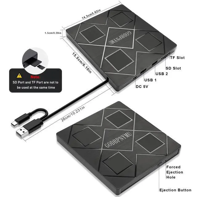 External DVD Burner User Guide I. Core Functions Playback Function: Relive cherished moments preserved on VCD/CD/DVD—wedding day warmth, birthday party joy, Christmas Eve gatherings, and other special celebrations. Supports diverse content including home videos, classic films, music albums, educational materials, game discs, and important documents. Burning Function: Burn digital content like music, photos, and videos onto discs for long-term preservation, playback across multiple devices, and digital organization/archiving. II. Software Preparation Player Software (Required): Since most operating systems do not pre-install DVD playback components, a third-party player must be installed beforehand. Recommended Options: VLC Media Player: Free and open-source with comprehensive format support and optimal compatibility KMPlayer: Feature-rich with excellent decoding capabilities Burning Software (Optional): Prepare dedicated software if disc burning is required. Recommended Options: BurnAware Free Edition: Lightweight design for basic burning needs Nero: Professional-grade tool offering advanced burning and editing features III. Critical Considerations Genuine/Protected DVDs: First-time playback requires setting the “Region Code.” Select the option that exactly matches the disc's labeled region. Important Note: Region code changes are limited (typically =5 times). Choose carefully. Standard Discs:Includes self-burned VCD/CD/DVD data discs, music CDs, game discs, etc. Typically plug-and-play after installing playback software. IV. Operation Flow 1. Install required playback/burning software 2. Connect external optical drive via USB port 4. Use corresponding software to play or burn
