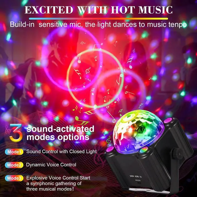 - GODENBA disco party light combines with 3 sound activated modes, 2 self-propelled modes and strobe light mode, you could adjust different lighting combinations according to the party at the time.