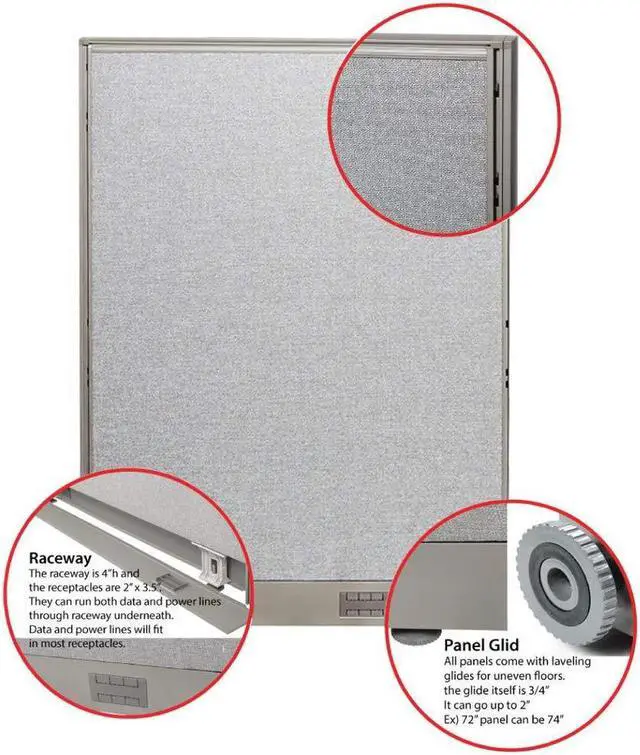 If the floors are uneven, glides can be used to level the partition and make it stand still. A glide itself is 3/4" in height and can be adjusted to 2" max.