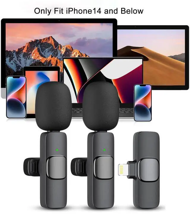 Professional Wireless Lavalier Lapel Microphone for iPhone, iPad, Only fit iPhone14 and Below (2 Pack)