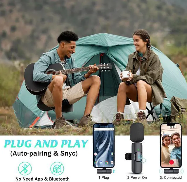 No Need App/Bluetooth! The wireless lapel lavalier microphones can be clipped on the collar to free your hands for audio video recording. Compatiable with iPhone14 and Below.