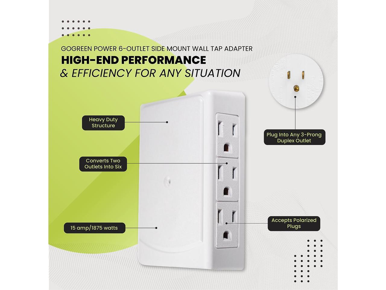Go Green Power GoGreen Power Side Mount Wall Tap 6 Outlet White (GG-16000TSM)