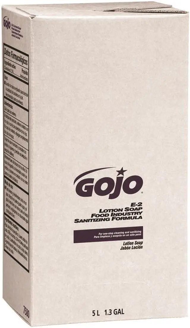 Specially formulated one-step handwashing and sanitizing soap for the food processing industry. Eliminates the need for a chlorine dip. Contains lotions for keeping skin moisturized and soft. Registered with NSF International as an E2 for use in USDA-regulated food processing environments. Soap Type: Liquid; Application: Hand; Capacity (Volume): 5000 mL; For Use With: GOJO® PRO™ 5000 Dispenser.