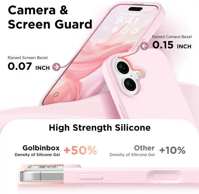 16FT Military-Grade Drop Protection: GolbinBox for iPhone 17 case has passed the 4500+ drop test. A four-corner airbag design, soft elastic silicone, and a hard PC backplane can effectively absorb external impact. The raised edges of the camera and screen prevent scratching the camera and screen