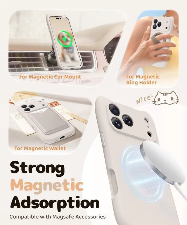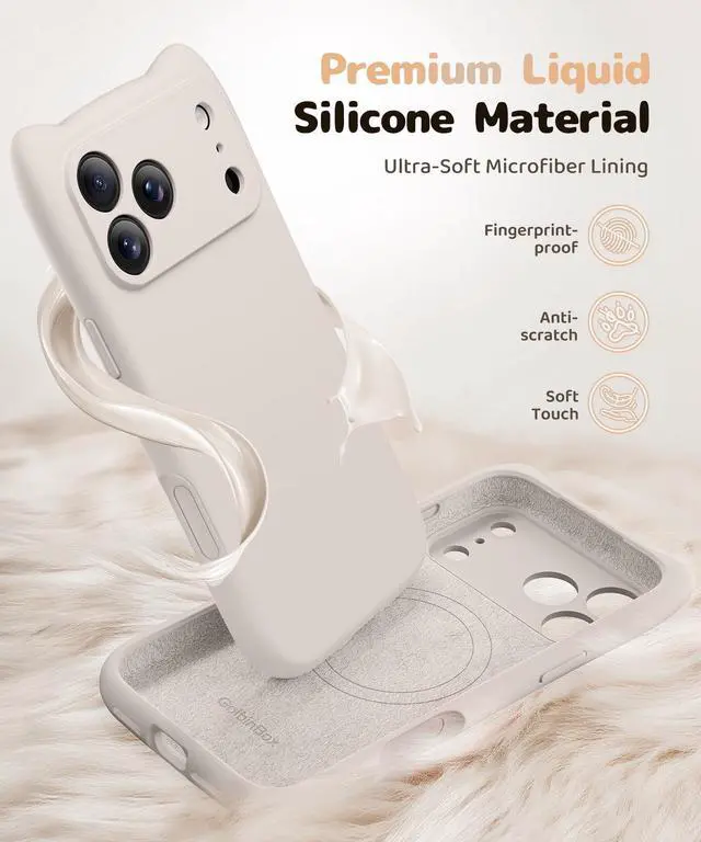 GolbinBox Magnetic for iPhone 17 Pro Max Case, [Compatible with MagSafe] [Full Camera Protection], Liquid Silicone Case with cute cat ear, Full Body Shockproof Phone Cover for 17 Pro Max 6.9'', Stone