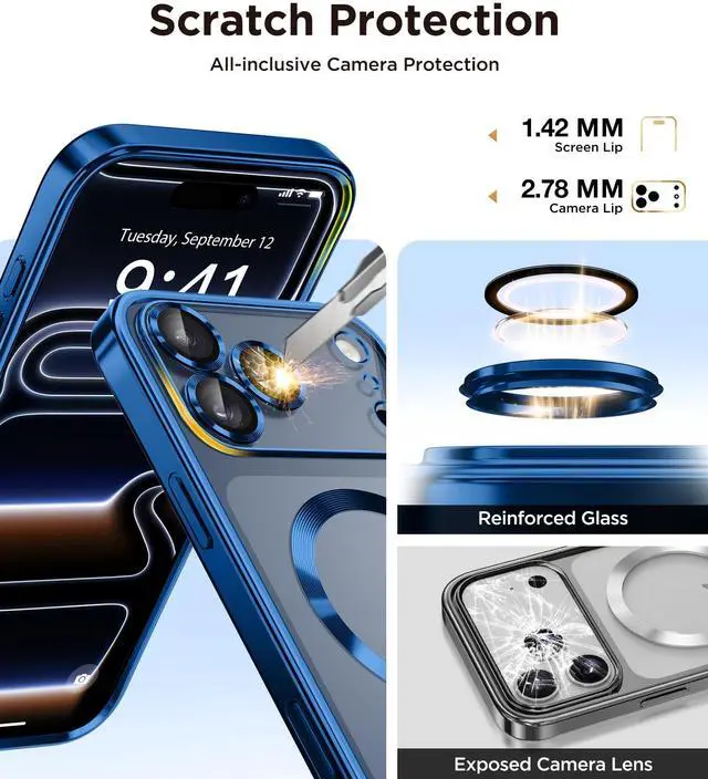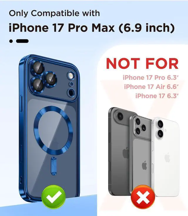 ![Alt view image 3 of 7 - Magnetic Case for iPhone 17 Pro Max with Screen Protector, [Compatible with MagSafe][Camera Protection][16FT Military Protection] Slim Shockproof Phone Case for 17 ProMax, Deep Blue/Clear](https://c1.neweggimages.com/productimage/nb640/C5JMD2603050D651E05.jpg)