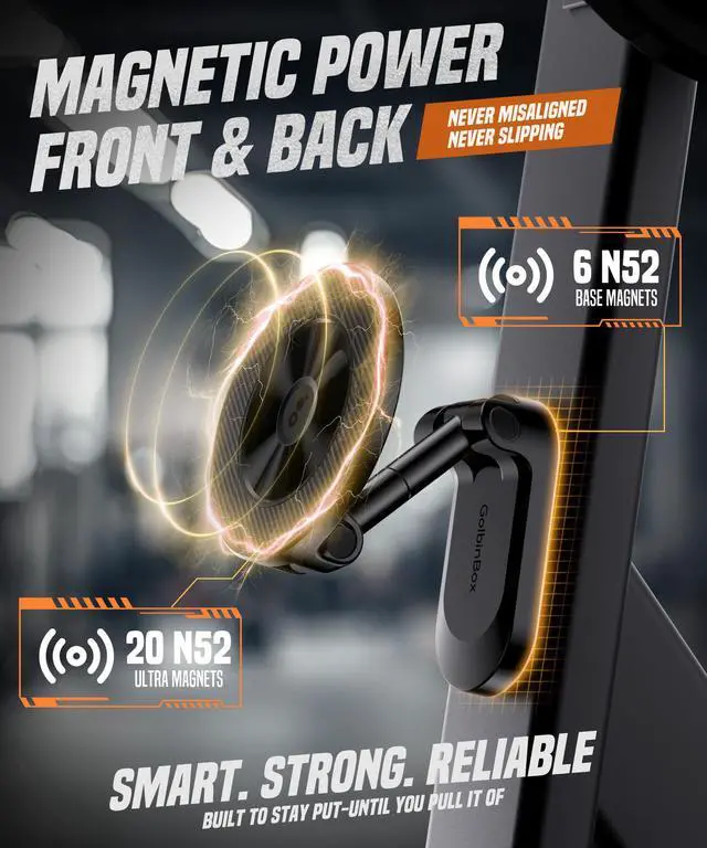 Magnetic Strength & Silicone Stability: Equipped with 26 N52 magnets, GolbinBox gym phone mount securely attaches to racks, benches, and other metal surfaces. The anti-slip silicone base keeps your phone stable during training, letting you film workouts or watch videos hands-freeno slips, no drops. Enjoy your fitness without distraction