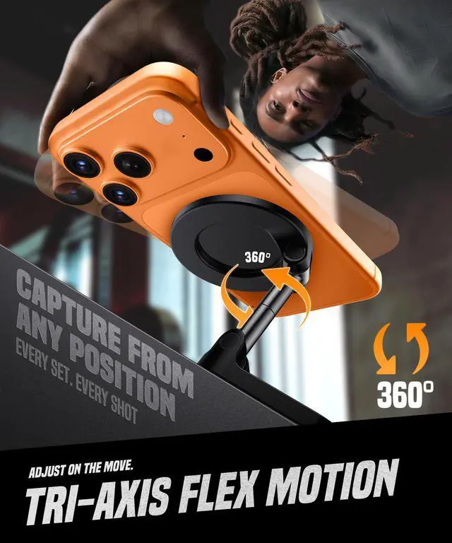 Tri-Axis 360° Adjustable: This phone mount lets you tilt the top and bottom 180° and rotate the main axis 360° for horizontal adjustment. Easily customize your phones position for workouts, videos, live streaming, or desk use, giving you convenience and complete flexibility. Get any angle you want with this magnetix mount