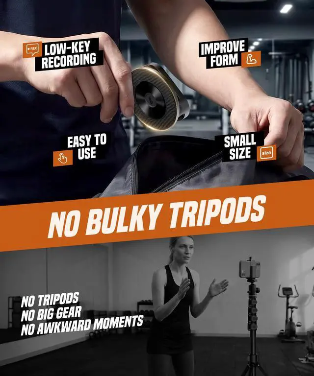 Struggling to record your workouts? Get stable, low-key filming with adjustable anglescapture every rep clearly for training review or content creation. Stay focused on your workout, not your phone