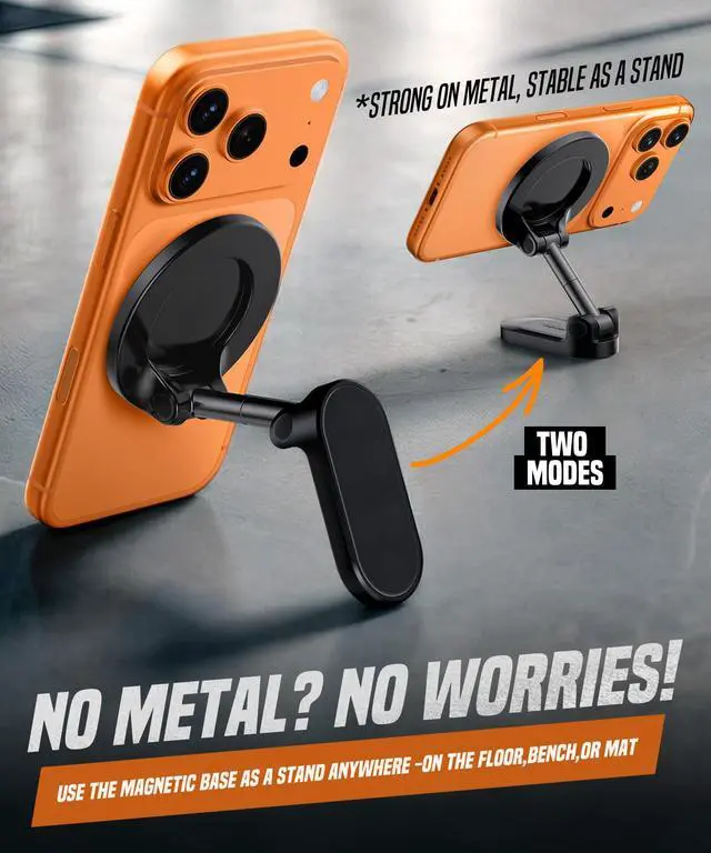 Versatile Use & Less Setup: Not only for metal surfaces, the magnetic base doubles as a standgiving you flexible, hands-free placement wherever you train or work. Filming your gym motivation content just got easier with this discreet phone mount