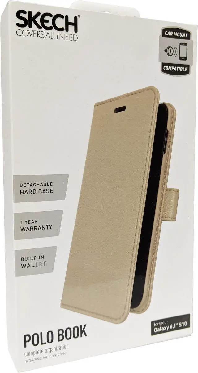 * Application/Usage: License<br /> * Application/Usage: Credit Card<br /> * Application/Usage: Cash<br /> * Application/Usage: Smartphone<br /> * Material: Polycarbonate<br /> * Material: Polyurethane<br /> * Application/Usage: License<br /> * Application/Usage: Credit Card<br /> * Application/Usage: Cash<br /> * Application/Usage: Smartphone<br /> * Package Contents: <ul> <li>Polo Book </li> <li>Hard Case</li> </ul><br /> * Material: Polycarbonate<br /> * Material: Polyurethane<br /> * Product Type: Carrying Case<br /> * Product Type: Carrying Case<br /> * Compatibility: Samsung - Galaxy S10<br /> * Limited Warranty: 1 Year<br /> * Color: Gold<br /> * Product Line: Polo Book<br /> * Color: Gold<br /> * Product Name: Polo Book For Galaxy S10<br /> * Product Line: Polo Book<br /> * Brand Name: Skech<br /> * Brand Name: Skech<br /> * Style: Book Fold<br /> * Style: Book Fold<br /> * Brand Compatibility: Samsung<br />
