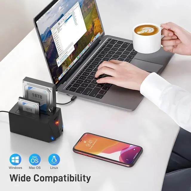 HardDrive001Useful Type-C Port FIDECO hard drive dock is engineered with type-C port and we offer one USB C to USB C cable and one USB C to USB A cable so you can use the 2 USB cables to utilize the full performance of your HDD. Access your files directly with desktops or laptops. HardDrive001Universal Compatibility FIDECO hard drive docking station is widely compatible with Windows Mac OS and Linux. Please note that it can only support 2.5 or 3.5 SATA HDD/SSD. Just plug and play! No driver is needed! HardDrive001UASP USB 3.2 Gen 1 Super Speed FIDECO hard disk docking station can support UASP USB 3.2 Gen 1 fast data transfer speed with rates up to 5Gbps.