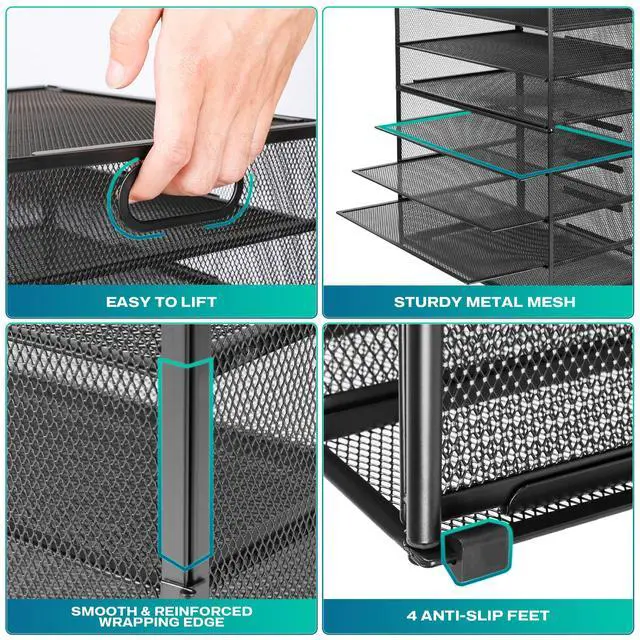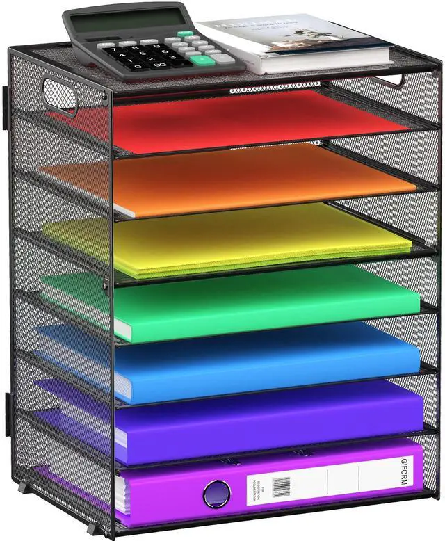 GoldOrcle 8-tier Mesh Paper Tray Organizer with Handles brings your workspace more space and say byebye to clutter!