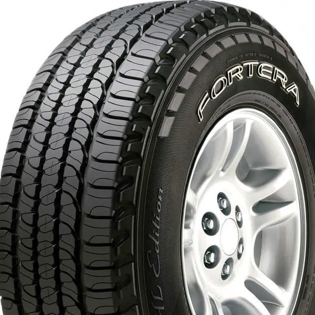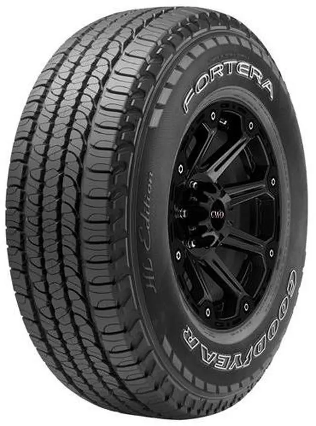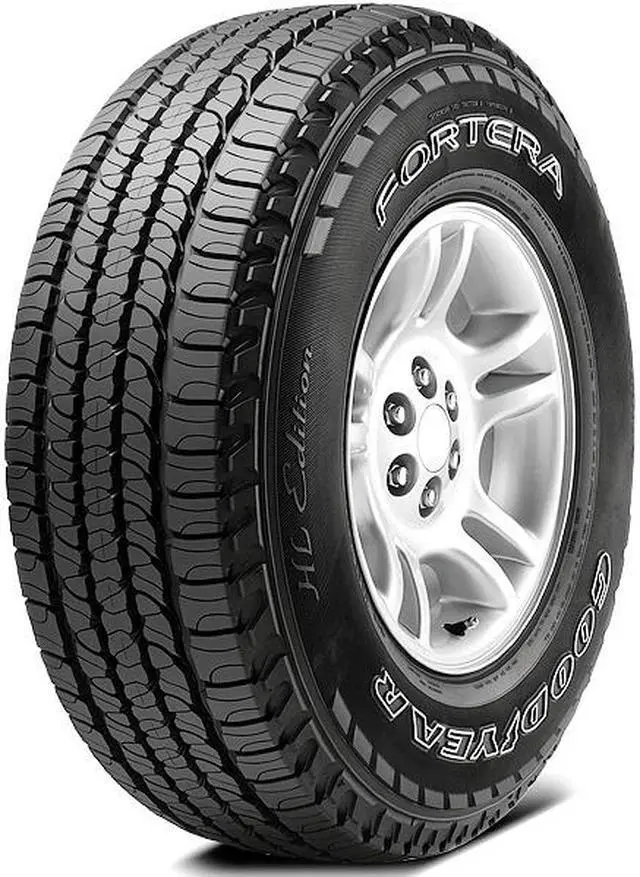 The Goodyear Fortera HL (OE) is a touring all season tire manufactured for SUV and light truck vehicles. It is the original equipment tire of select vehicles. The all weather traction and hydroplaning resistance are the result of the tread design. The optimized variable pitch sequence cancels out the road noise and offers a comfortable drive. The tread design enhances the driving stability and the steering responsiveness by maintaining road contact. The Fortera HL (OE) offers a longer lasting tread life by preventing irregular wear patterns from forming on the tread.