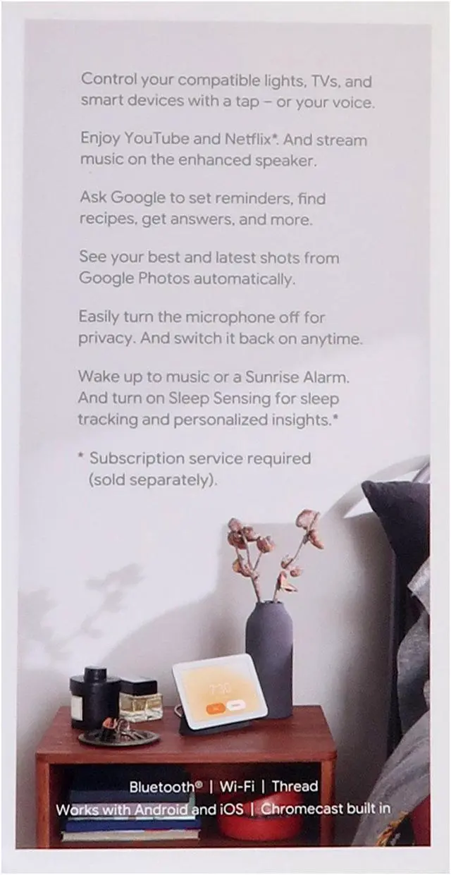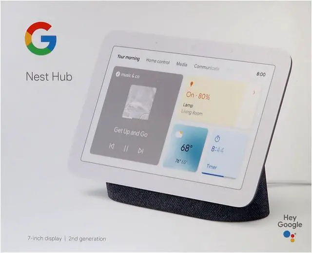Enjoy all the functionality of the Google Assistant and a 7" touchscreen with the 2nd generation charcoal Google Nest Hub. It is equipped with Wi-Fi connectivity to browse online content, control your compatible smart home devices, and connect with other local smart devices; Bluetooth is also built-in to enable streaming from your favorite compatible device. The touchscreen helps simplify on-screen app navigation and displays search results, photos, videos, your smart security footage, and more. A physical mute switch enables you to turn off the onboard microphones for added privacy.