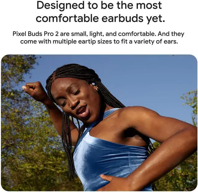 Pixel Buds Pro 2 are designed to be the most comfortable earbuds ever, with the most secure fit.