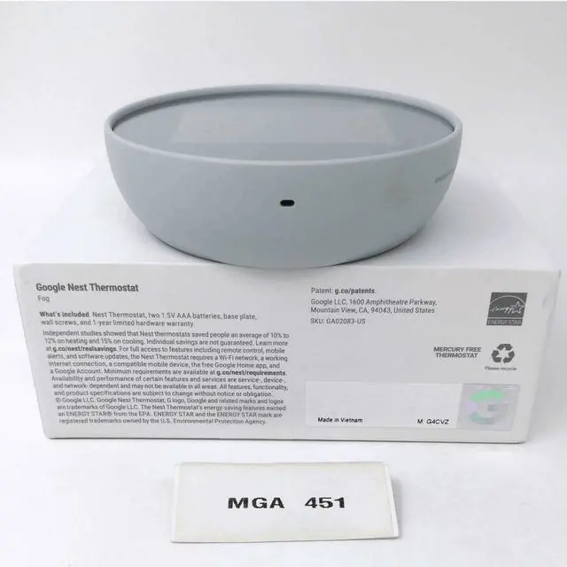 The Nest Thermostat is designed with recycled materials to reduce waste. Its plastic parts contain 49% recycled post-consumer plastic.