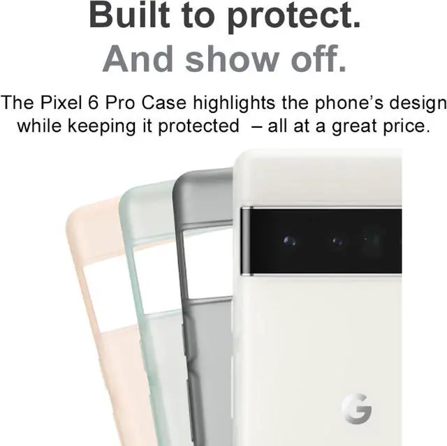 The Pixel 6 Pro Case highlights the phone's design while keeping it protected all at a great price. Colours: Gray (Stormy Sky), Light Green (Soft Sage), White (Light Frost), Golden (Golden Glow) UPC: 193575030333