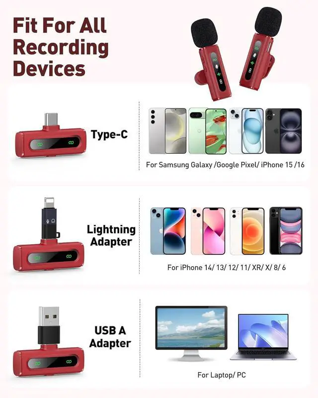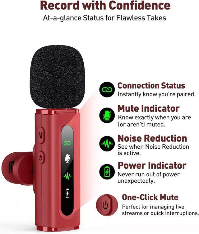 Plug & Play with Intuitive Interface: GoorDik wireless mini mic is an effortless operation. Each function is accompanied by corresponding indicator lights. You can set the different functions of noise reduction, original sound, and mute function easily with the intuitive user interface. Plus, it is equipped with 1 magnetic microphone clip on each mic transmitter, allowing you to adjust the direction for optimal omni-pickup, enhancing your recording audio