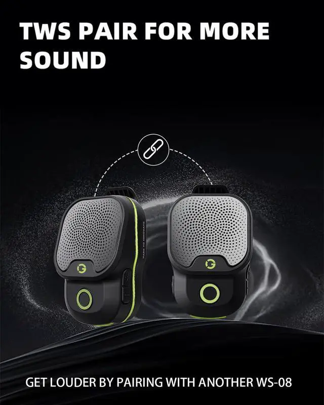 Wearable Bluetooth Speaker, Bluetooth 5.4 Clip On Wireless Speaker with Mic, TWS Function, 12Hrs Playtime, IPX7 Waterproof, Mini Portable Speakers for Outdoor Working, Biking, Running