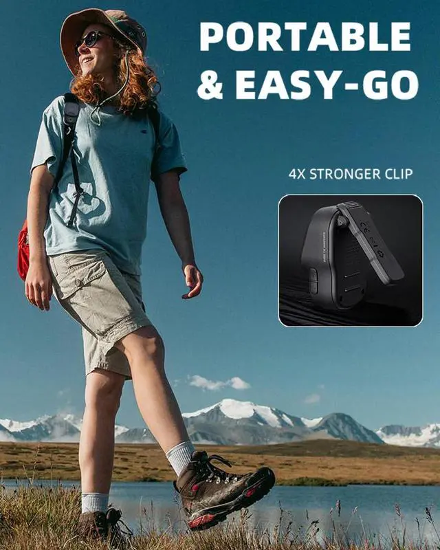 Incredible Playtime & Extended Battery LifeThis clip-on wireless speaker integrates the latest power management technology with a 600mAh lithium-ion battery, providing up to 12 hours of music playback with a single charge. You can conveniently check the battery status on your device. It's the perfect companion for travel, workouts, or a day out.