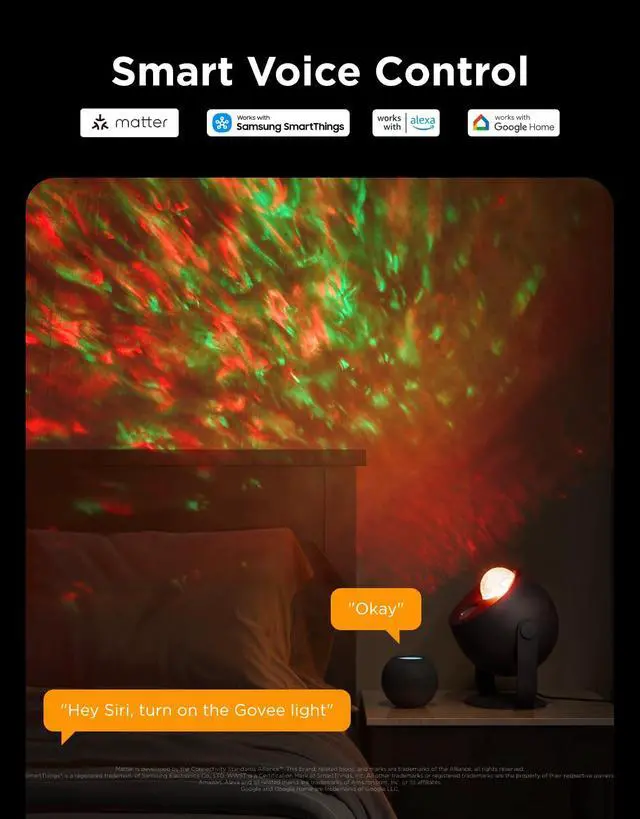 Matter-Supported Smart Control: As a Matter-enabled device, govee star light ensures reliable connectivity. Work with Matter, Google Assistant and Alexa, enjoy hands-free control.