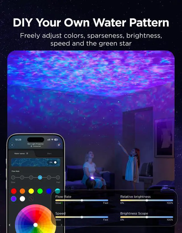 Effortlessly Adapts to Diverse Situations: Govee star projector offers 40+ presets. Customize millions of colors, ripple effects, and add stars in Blink/Orbit mode for any atmosphere.