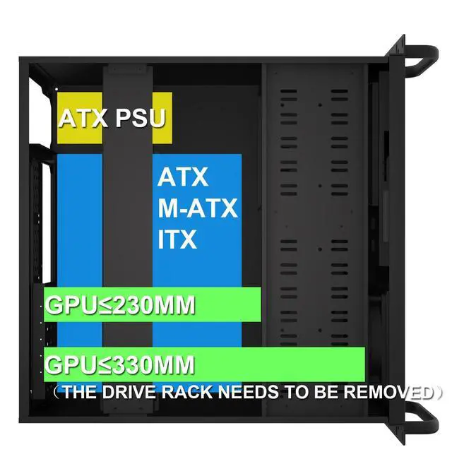 Compatibility: 12 x 9.6 ATX/M-ATX/Mini-ITX (smaller than 305mm*245mm/12* 9.6 inch)