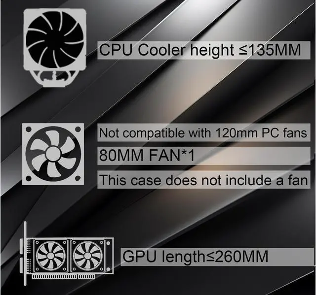 • Motherboard support: M-ATX/ITX.