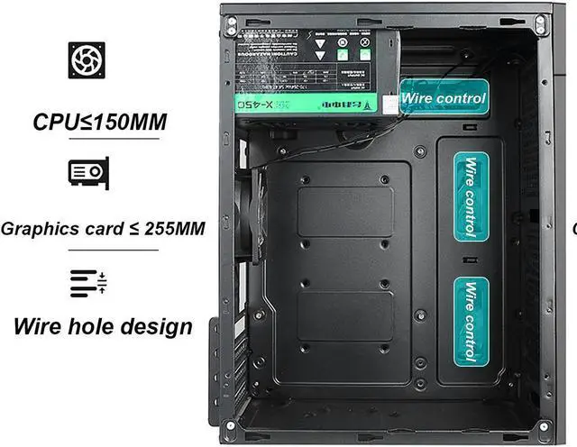 Motherboard support: M-ATX/ITX. Max CPU cooler height: 150mm Number of fans supported: 3X120MM, 1X80CM (this chassis does not include chassis fans) GPU length255MM 2 x USB 2.0 - HD Audio