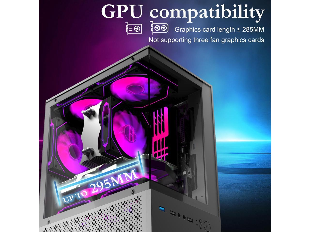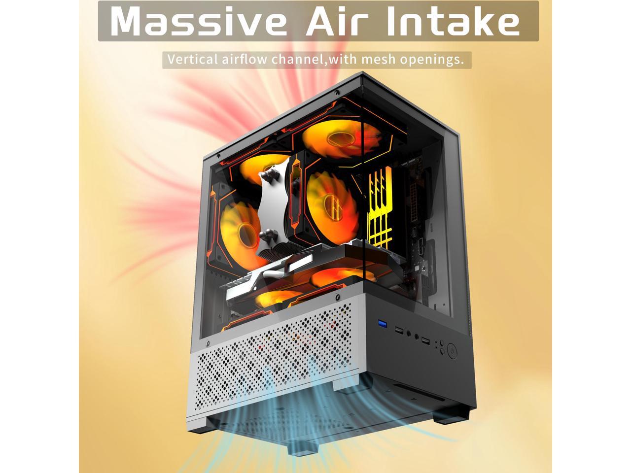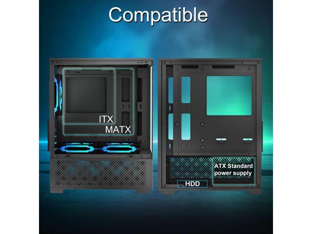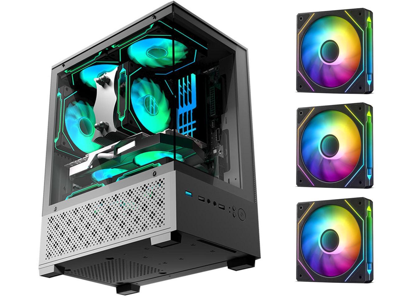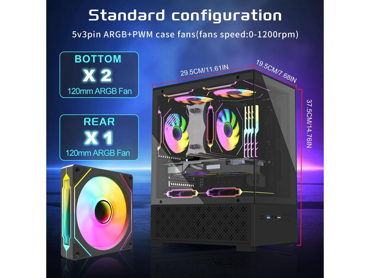 Micro ATX Case, MATX PC Case with 3 X 120mm 3-Pin ARGB Fan Pre-Installed, Panoramic View Tempered Glass Front & Side Panel, Black