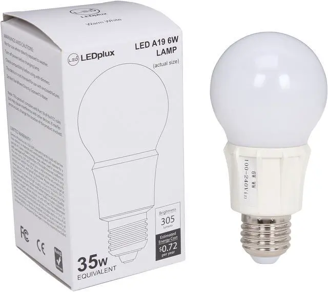 Features The 6W GPI LEDplux A19 light bulbs are designed to be a TRUE direct replacement for 35-watt incandescent light bulbs. Featuring 350+lm light output and more than 80% energy-saving and 40,000 hours lifetime, GPI A19 LED light bulbs can save you significant electricity and maintenance costs.