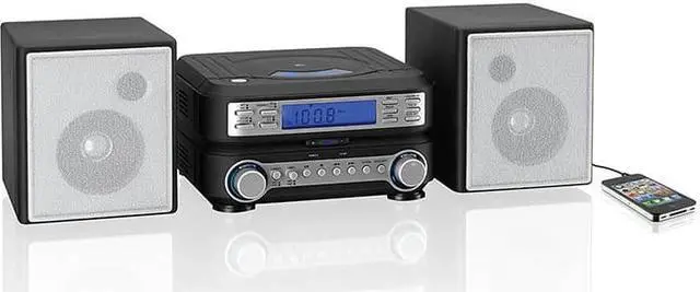 Inputs: 3.5 mm audio video input, 3.5 mm audio input, Detachable stereo speakers, Remote with CD controls, 0.7" negative LCD display with blue backlight, Dimmer control, Digital clock with single alarm, Wake to iPod, CD, radio, or alarm,