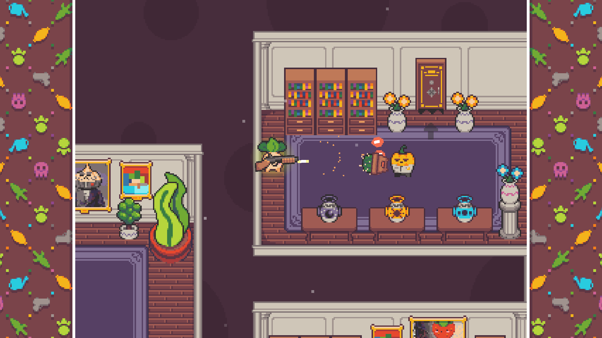 Turnip Boy is ready to commit more felonies in this comedic action-adventure game with roguelite elements. This time the career criminal is teaming up with the fearsome Pickled Gang to plan and execute the weirdest heist of all time! Shake down hostages, steal precious valuables, and explore the deep, dark depths and history of the Botanical Bank.To pull off the perfect heist, you’ll need to purchase an array of dangerous and wacky tools from the dark web, including a diamond pickaxe, C4, and… a cardboard box? However, bank robbing isn’t easy, so be prepared for intense shootouts with security guards, the fuzz, elite swat teams and more!Features:-A thrilling single-player adventure full of bank robbing, dark web browsing, and fuzz fighting.-Roguelite elements to turnip the action.-A big ol’ bank to explore and loot.-An array of wacky weapons.-Take on whoever the bank throws at you in intense shootouts, from security guards to elite veggie swat teams!-A large cast of quirky food-based characters, including some familiar faces and new citizens with their own stories and problems.-Earn collectable hats to wear and new banger tracks to blast.-Discover a deeper history of Turnip Boy’s world and how it became what it is.