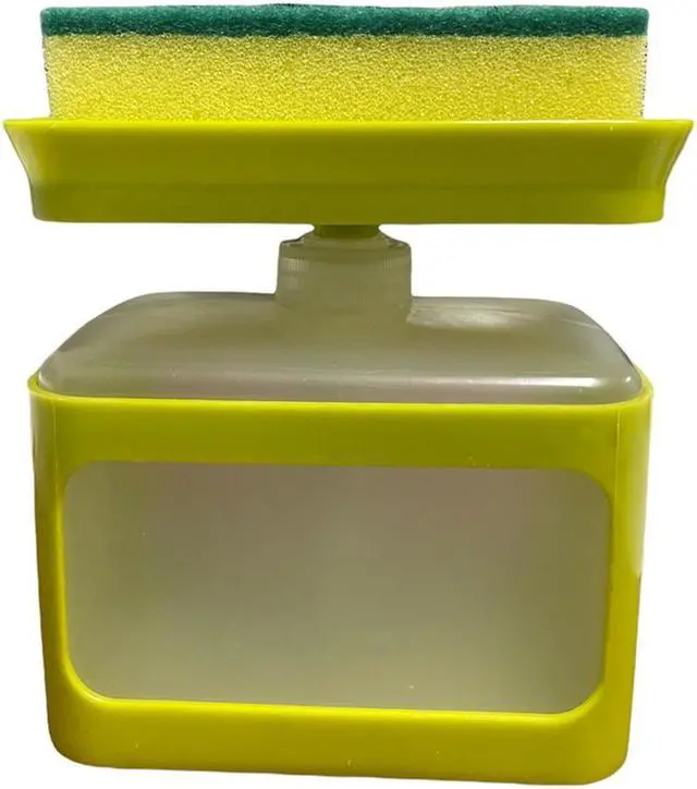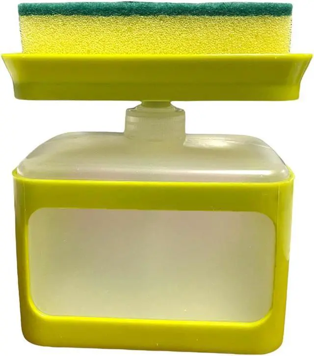 Soap Pump & Dish Sponge Set is the 2-IN-1 soap dispenser and caddy that allows for one-handed use and eliminates sink clutter. Start saving money because this set dispenses the perfect amount of soap every single time! Simply place the sponge on the top plate and press down. Holds sponges scrubbers rags and scouring pads in one convenient place while keeping water off of kitchen counters.