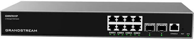 Hubs and Ports of the brand GRANDSTREAM whose model is Grandstream GWN7811P Switch manageable layer (layer) 3. Ports: 8x GbE RJ45 PoE 802.3 af/at, + 30W per port, 2x SFP+, fanless and reference PRO0457860