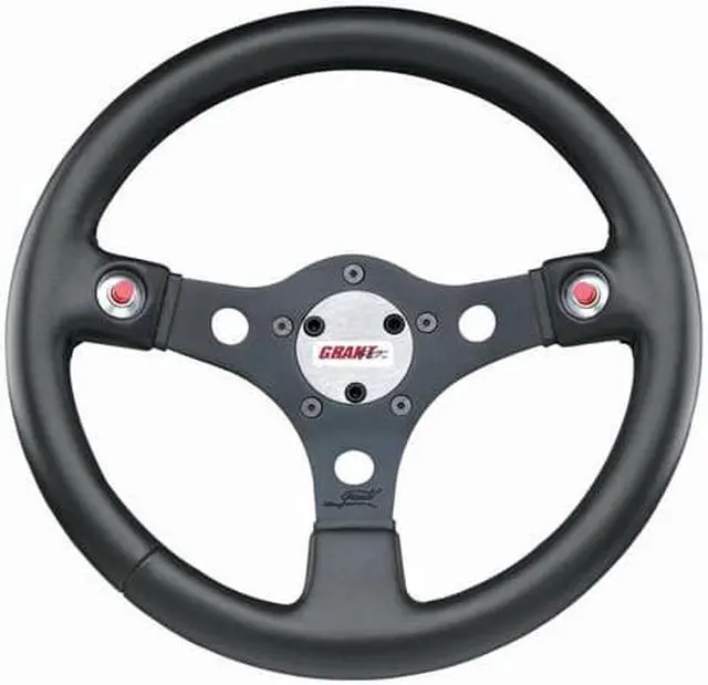 This wheel features our hand-stitched leather grained vinyl grip. It also has two holes pre-drilled to mount aftermarket switches (switches are not included). Wheel is shipped with plastic plugs in case one or both switch holes are not needed. Note: This wheel is pictured with an optional Quick Disconnect Kit. This wheel does not come with a horn button or part number 4000 GT Styling sleeve. It was designed to be used with our Racing Quick Disconnect Kits. If you want to put this wheel on a street car you will need to also purchase a 4000 Styling Sleeve and a 5898 Horn button or a similar Signature Series Horn Button and of course an installation kit.".