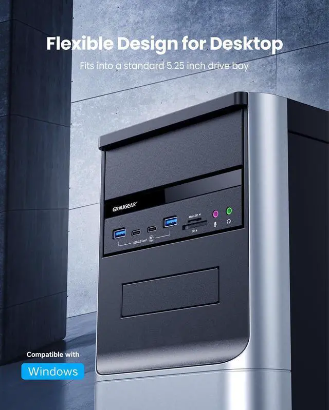 GRAUGEAR 5.25" Front Panel is designed to provide an easy way to increase the scalability of desktop computers to meet various needs. Multi-port feature allows connecting several existing peripheral devices simultaneously and avoids frequent plug in and plug out.