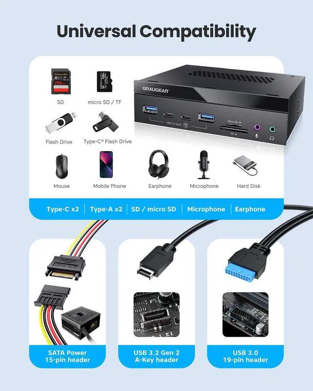 ![]() GRAUGEAR 5.25 Inch USB 3.2 PC Front Panel Card Reader, SD/microSD Internal Ca... | ![]() GRAUGEAR 3.5 Inch Front Panel USB Hub, Internal USB Hub with 20Gbps USB3.2 Ge... | ![]() GRAUGEAR 3.5 Inch Front Panel USB C Hub, SD/microSD Internal Card Reader, 20G... | ![]() GRAUGEAR 3.5 Inch Front Panel Hub, 4 Ports Internal Metal USB Hub, 2X USB-C 1... | ![]() GRAUGEAR 20Gbps USB 3.2 Gen 2x2 USB-C Front Panel Type-C Adapter, Motherboard... | ![]() GRAUGEAR 20Gbps USB3.2 Gen2x2 USB-C Front Panel Adapter, Motherboard Header E... | |