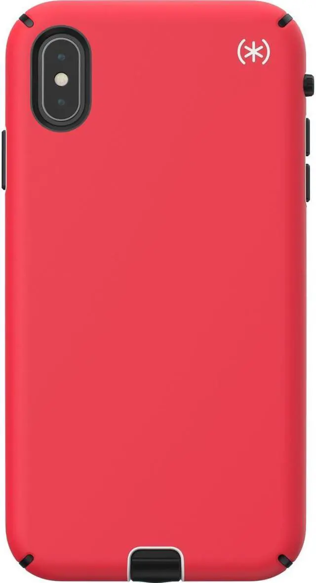 Speck products, The Presidio Sport Series Case for Apple iPhone XS Max. Matte Red finish with Black and Gray trim.