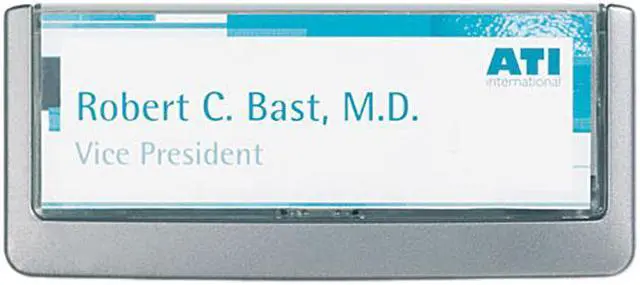 Click Sign provides a professional, cost-effective solution for interior door, wall, and panel system signage. Transparent, acrylic message window opens easily for fast changes. Use screws and plastic anchors to mount Click Sign to a wall. Use a two-prong pin to attach to a fabric panel wall or adhesive pads for mounting to other surfaces. Interior sign holder is made of ABS plastic with graphite finish. Click Sign includes screws, anchors, fabric panel pin and adhesive pads. Formatting software for creating sign inserts is available online.