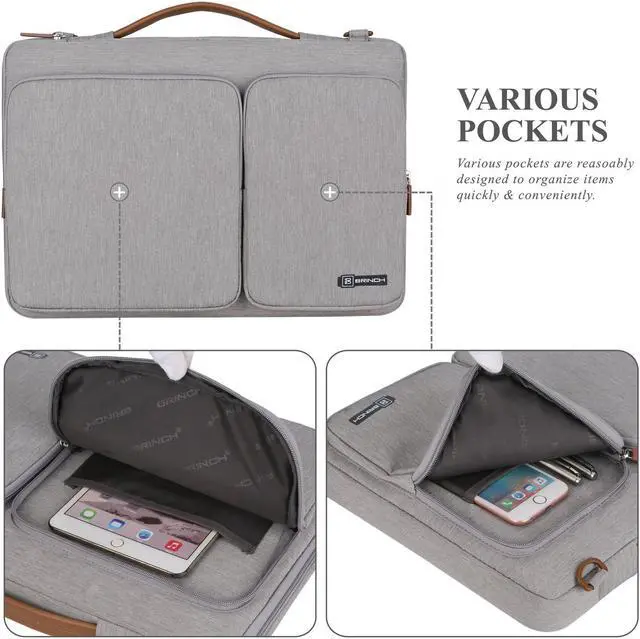 ESTONE 13.3-Inch Multi-functional Portable Laptop Sleeve Case Bag Briefcase with Luggage Strap for 13- 13.3 Inch Laptop MacBook Chromebook Computers, Gray