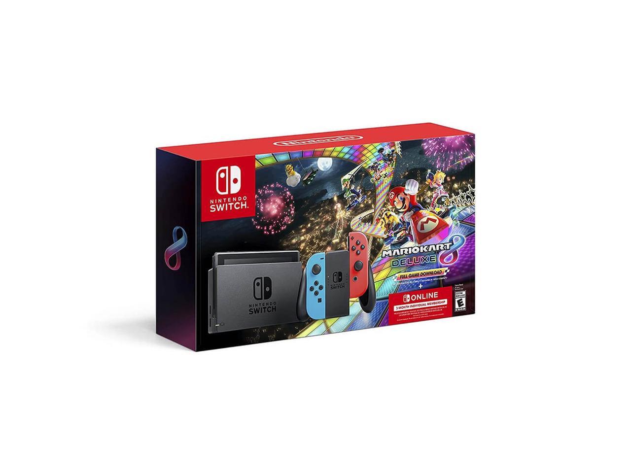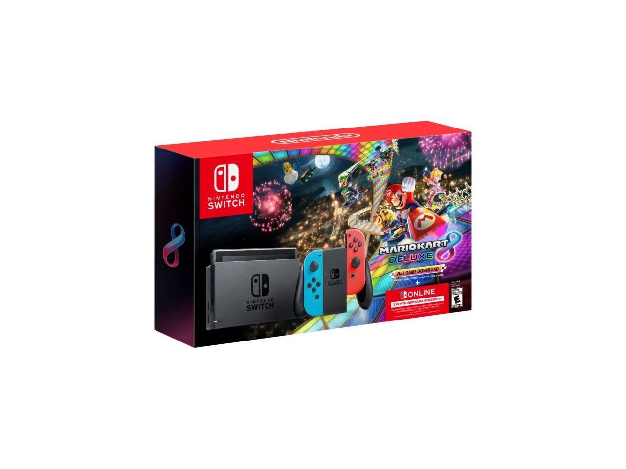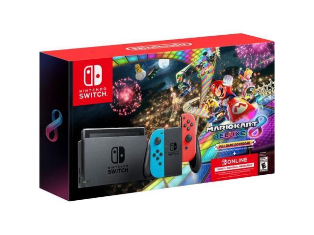 Nintendo Switch - Neon Blue/Neon Red Joy-Con + Mario Kart 8 Deluxe (Download) + 3month Nintendo Switch Online membership - Black/Neon Blue/Neon Red